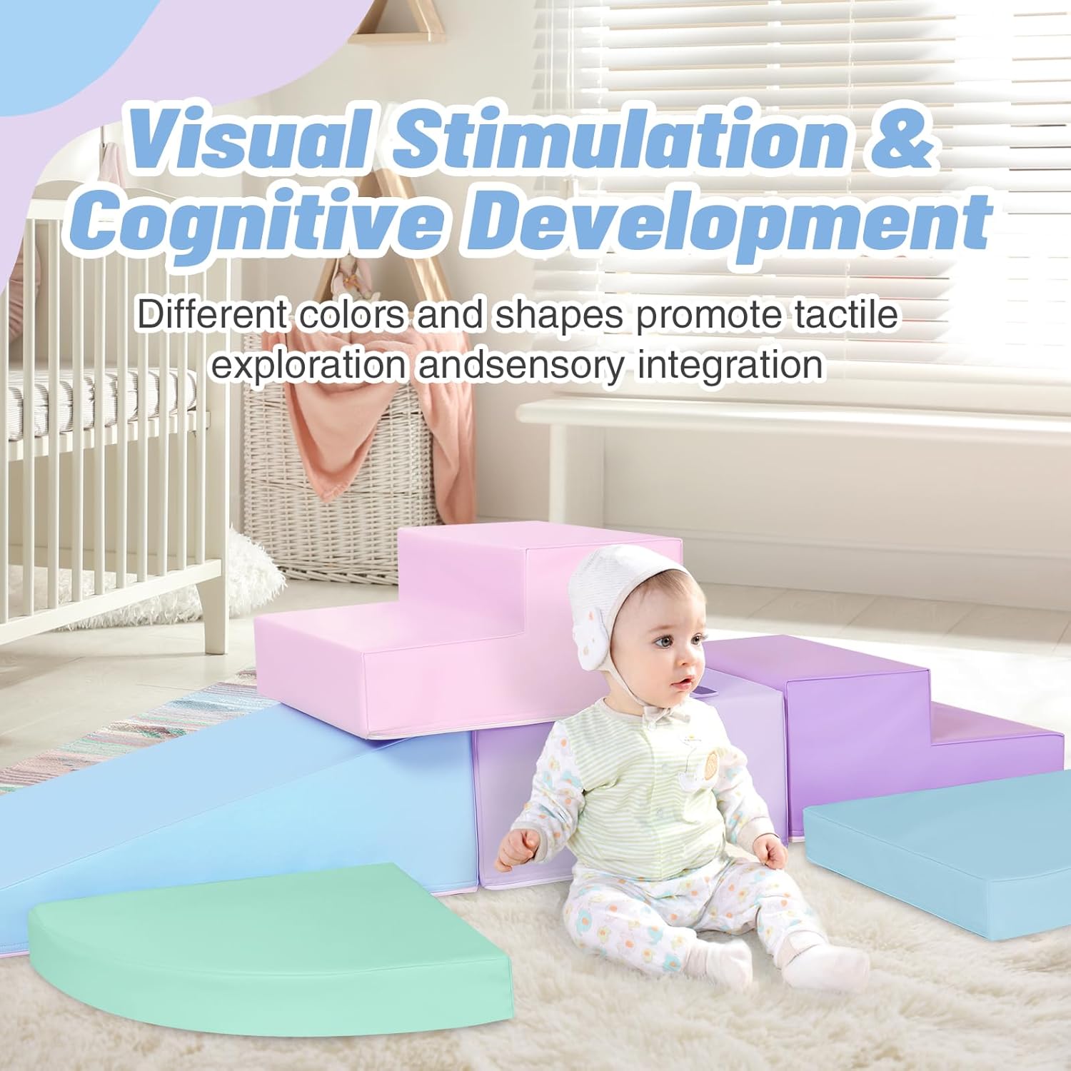 - Perfect Birthday Gift: 6-piece soft kids climbing mats is designed for homes, playrooms, nurseries, kindergartens, and preschools to ensure safe, fun playtime for kids. This wall climbing foam block set is an ideal birthday gift for babies, toddlers and preschoolers