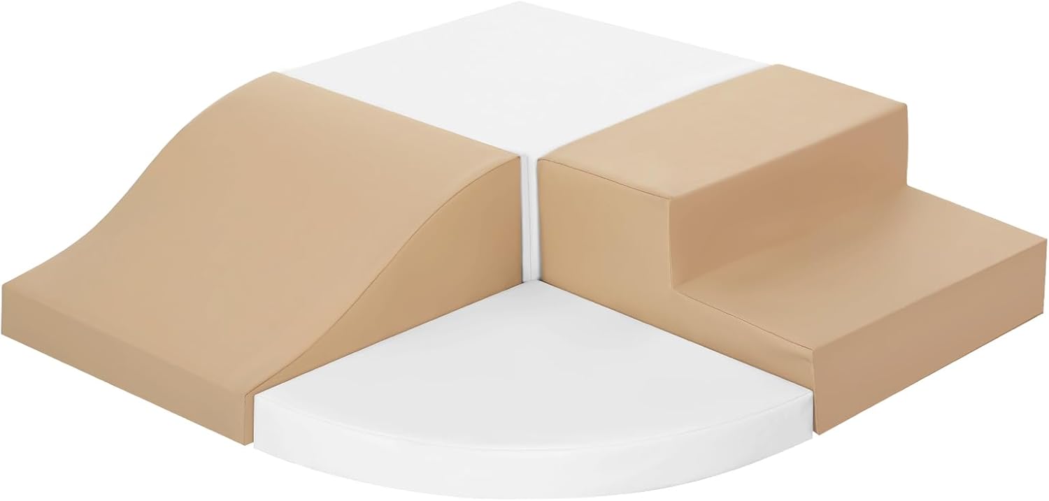 - Premium Climbing Experience: Toddler climbing toys features a variety of shapes for endless fun and imaginative play. Perfect for toddlers ages 3+, kids can stack and swap shapes as they climb, slide and enjoy the excitement of the toy. Baby climbing blocks consists of 1 coffee stairs, 1 coffee slide, 1 white half-moon, and 1 white square