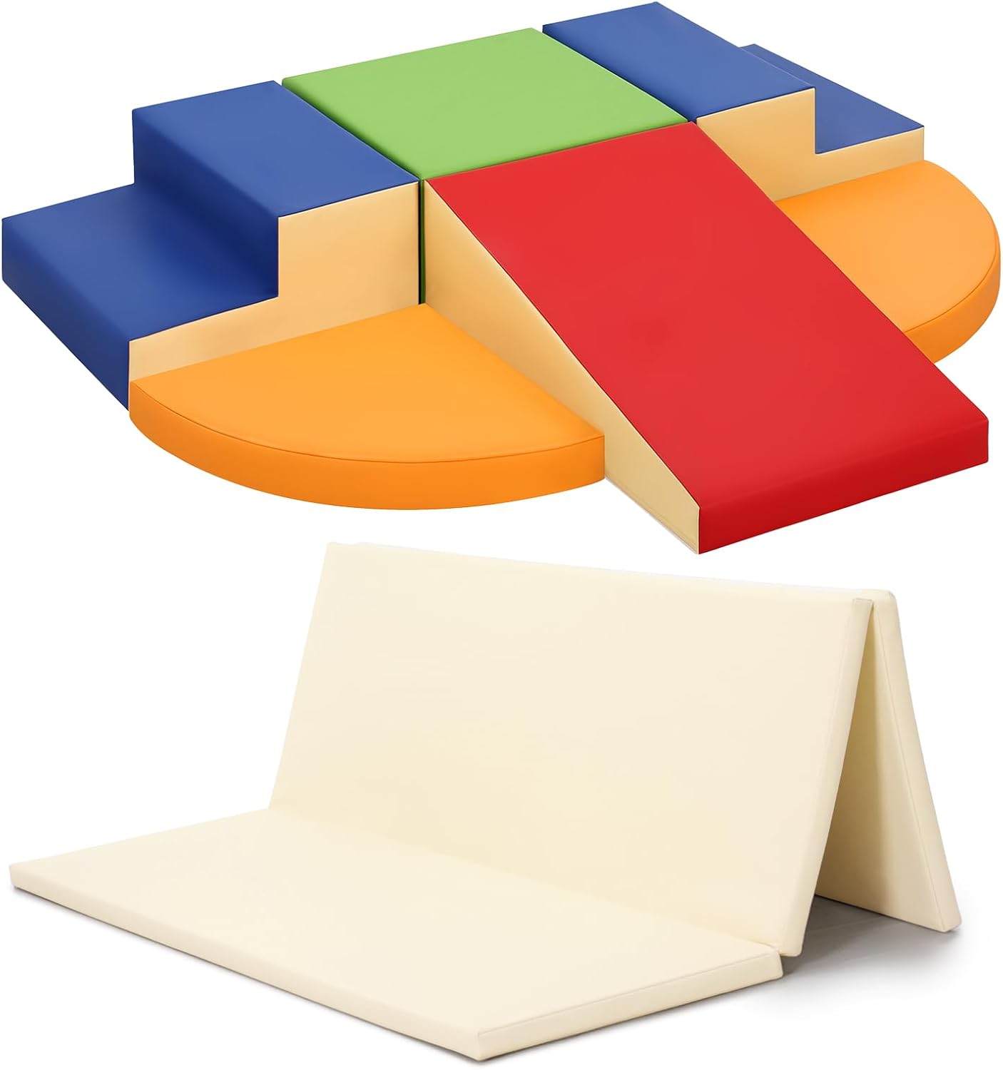 6-Piece Soft PU Leather Toddlers Climbing Toys, Baby Foam Climbing Blocks for Toddlers & PU Leather Waterproof Kids Playmat - Trifold Large Floor Mat - Thick Fodable Play Mat for Playpen