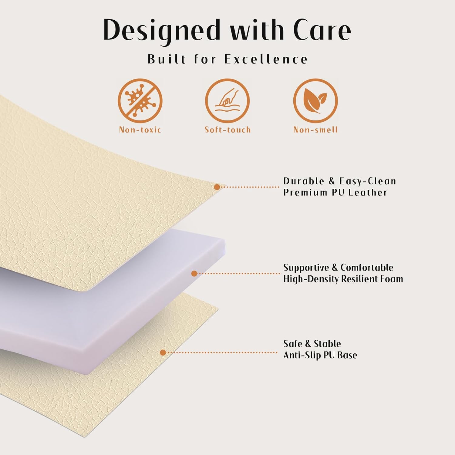 - Waterproof & Easy-to-Clean: HOOHTOOT beige foam play mat for baby with soft foam lining and leather top. The PU leather surface of large foam mat ensures that spills and messes are a breeze to wipe away, keeping the baby playmat foam clean and hygienic